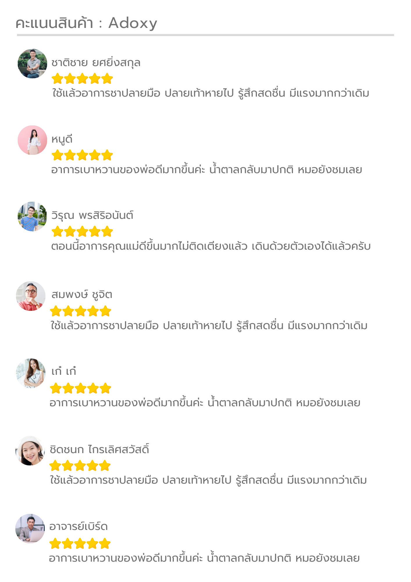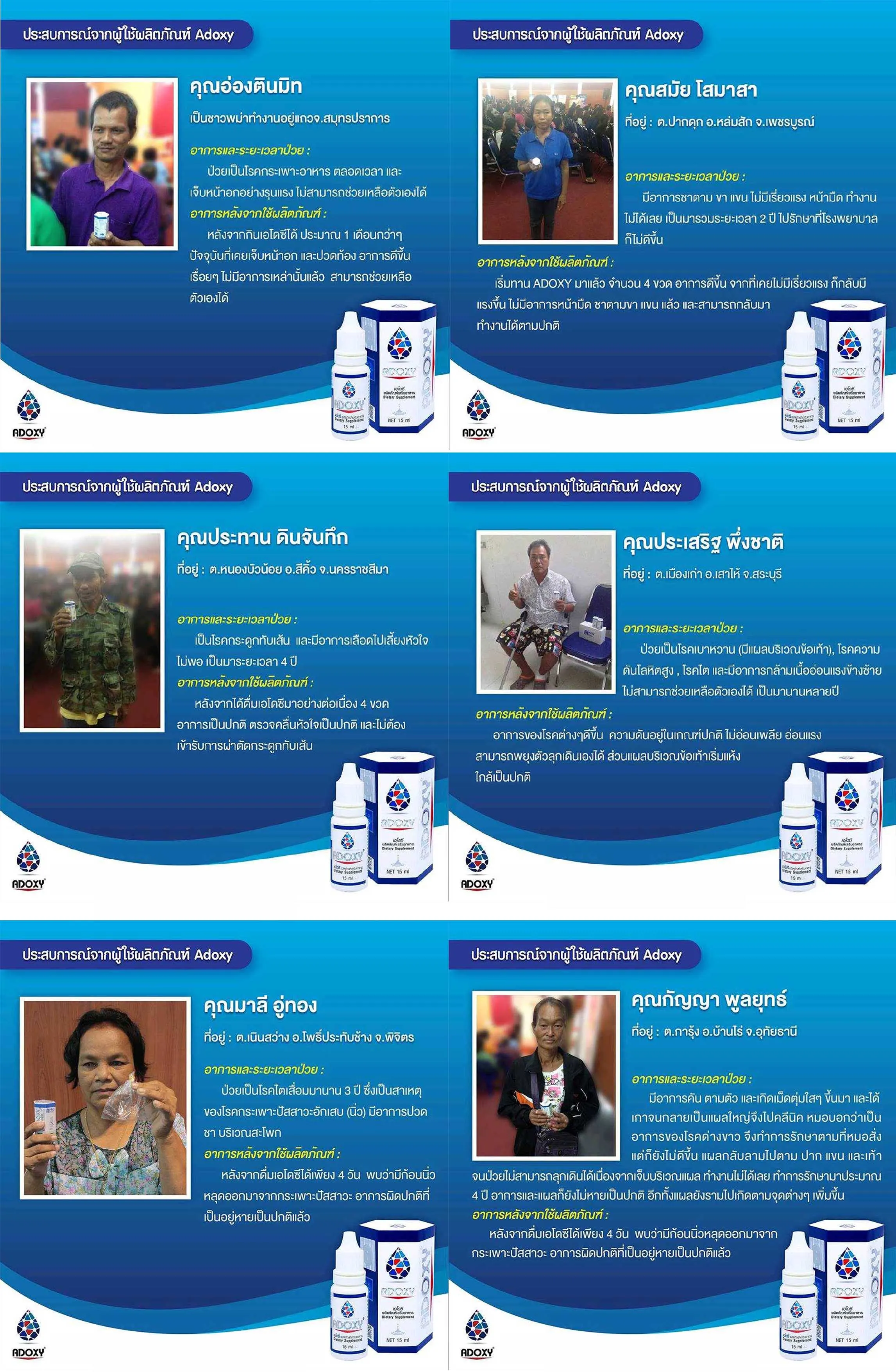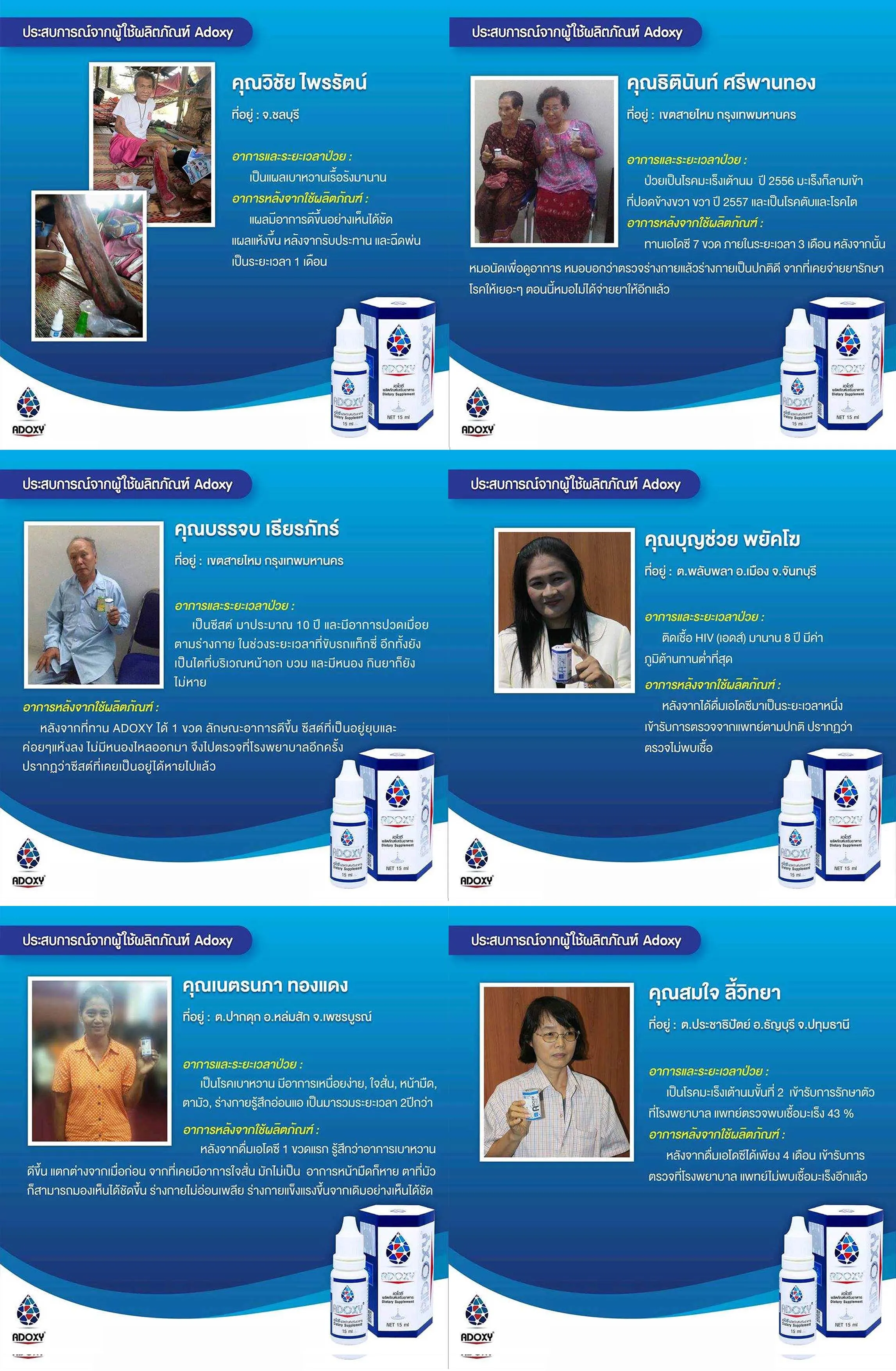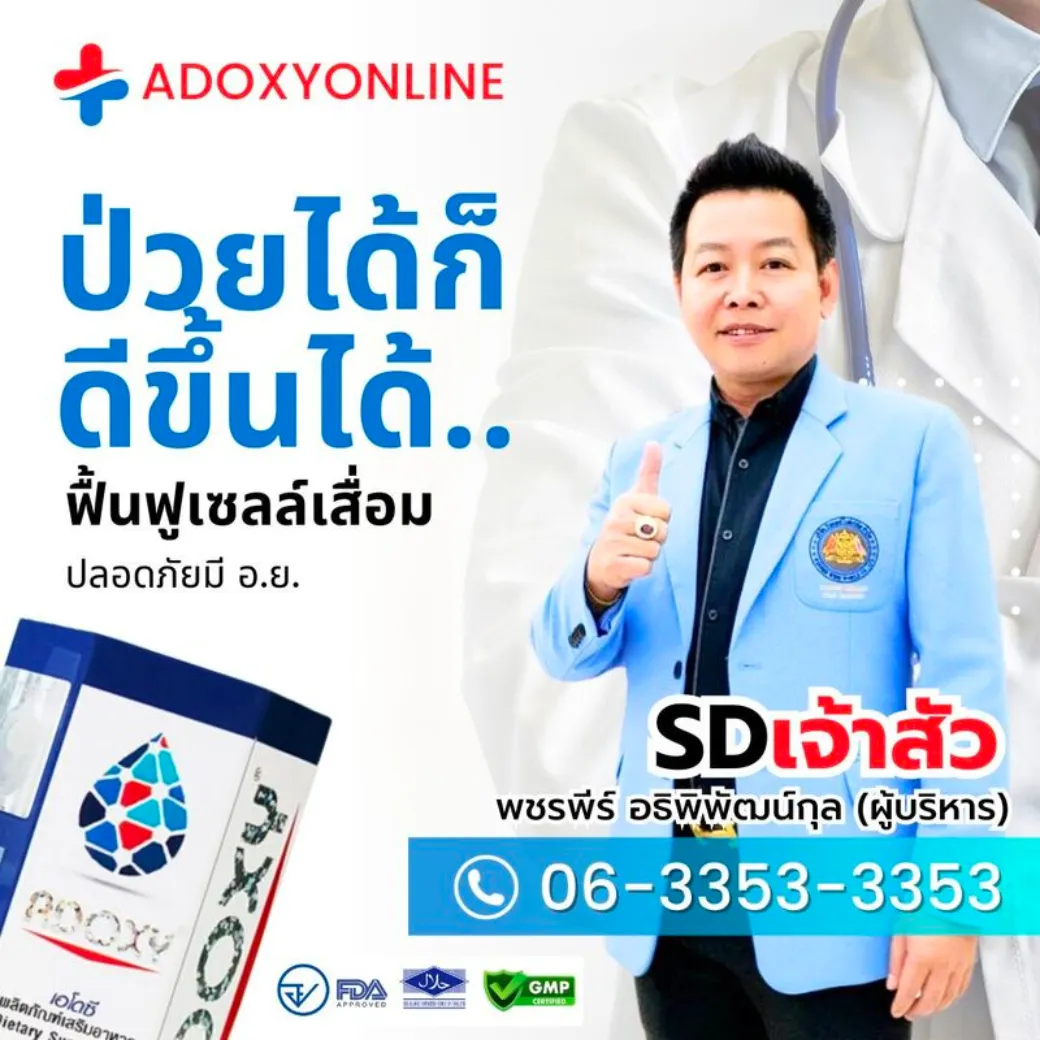 Adoxy มีเอนไซม์ 34 ชนิดแร่ธาตุ 78 ชนิด เป็นอาหารเสริมที่มีแร่ธาตุมากที่สุดในโลกและมีมาตรฐาน GMP จำหน่ายมาแล้วกว่า 15 ปี และมีผู้ใช้ผลิตภัณฑ์ทั้งในประเทศไทย เยอรมัน ญี่ปุ่น อเมริกา พม่า ลาว กัมพูชา และอีกหลายประเทศ