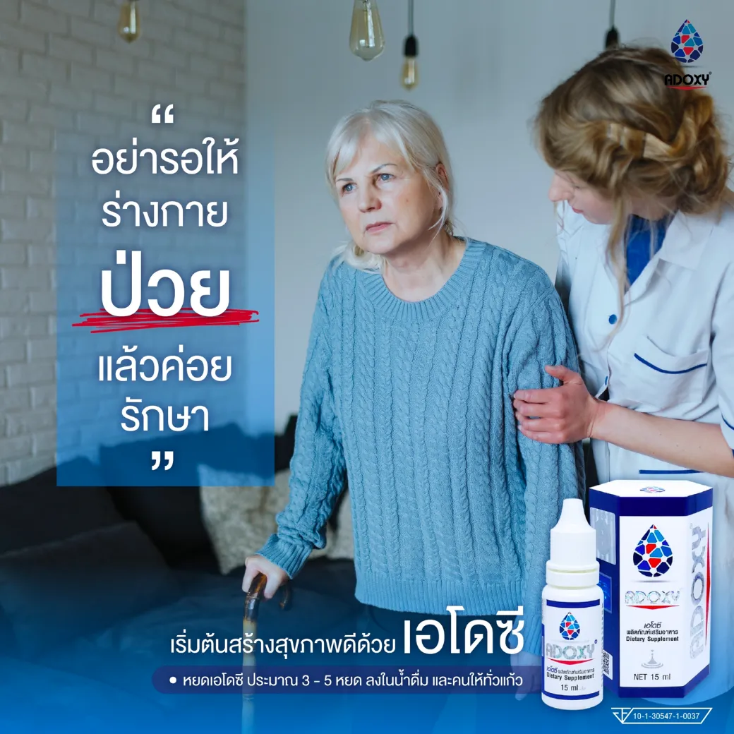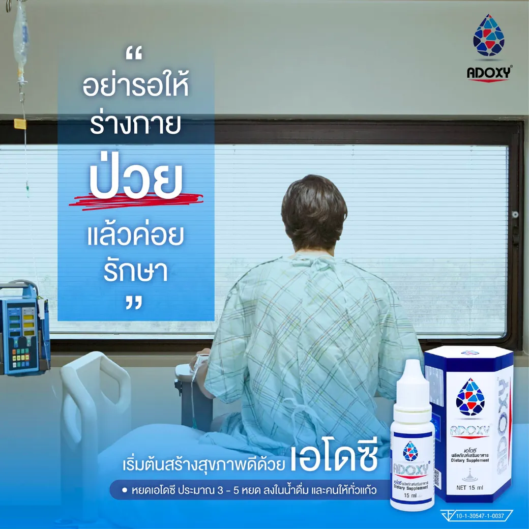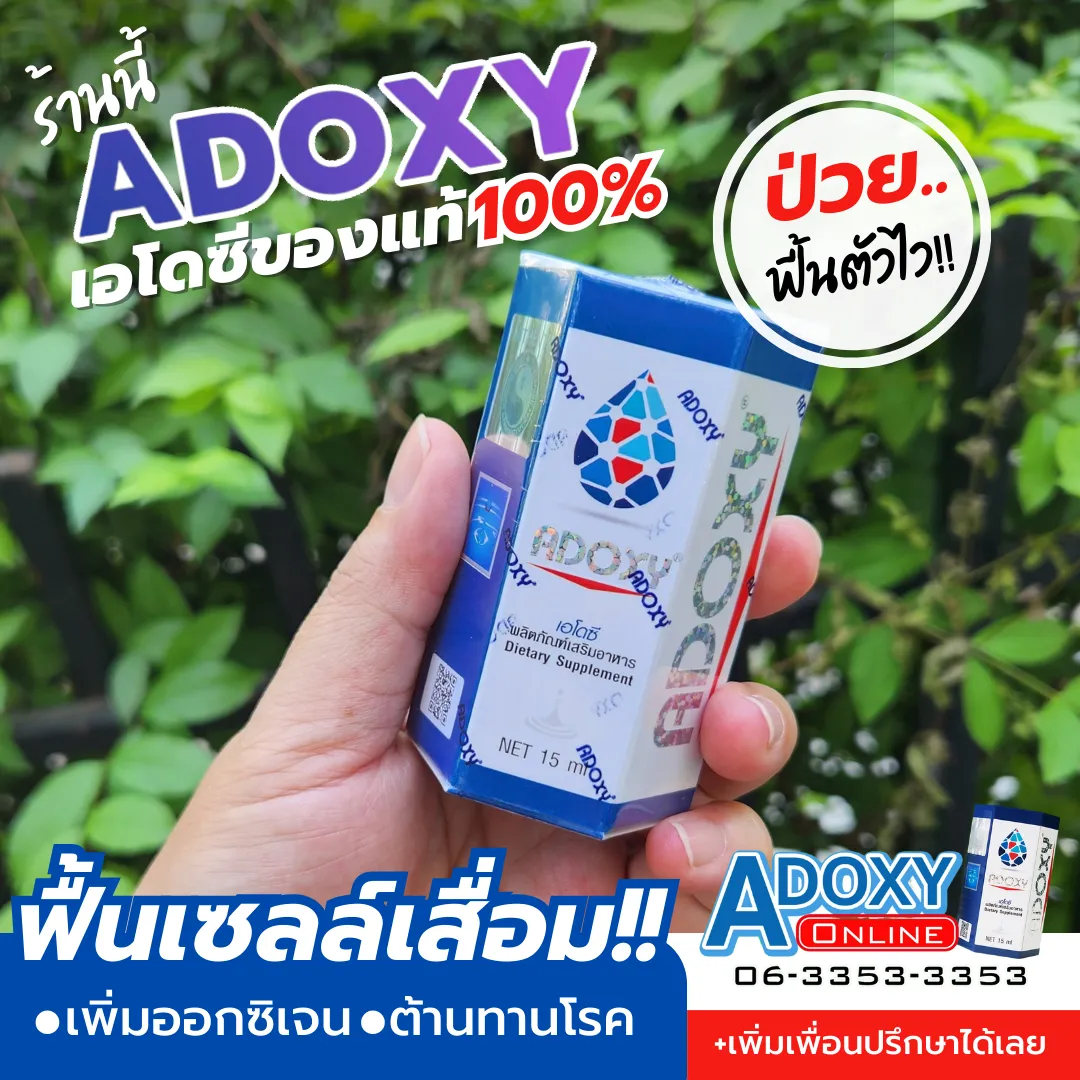 Adoxy คือออกซิเจนน้ำ ที่ช่วยฟื้นฟูเซลล์ ในร่างกาย ให้กลับมาแข็งแรงดังเดิม เมื่อเซลล์เราแข็งแร็ง อวัยวะส่วนนั้นก็แข็งแรง เมื่ออวัยวะแข็งแรงจึงหายป่วย เอโดซีเข้าไปแก้ที่ต้นเหตุของปัญหานั่นคือเซลล์เสื่อม..